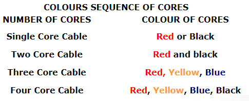In all multicore cables, black core denotes the neutral while other colours denote phase conductors.